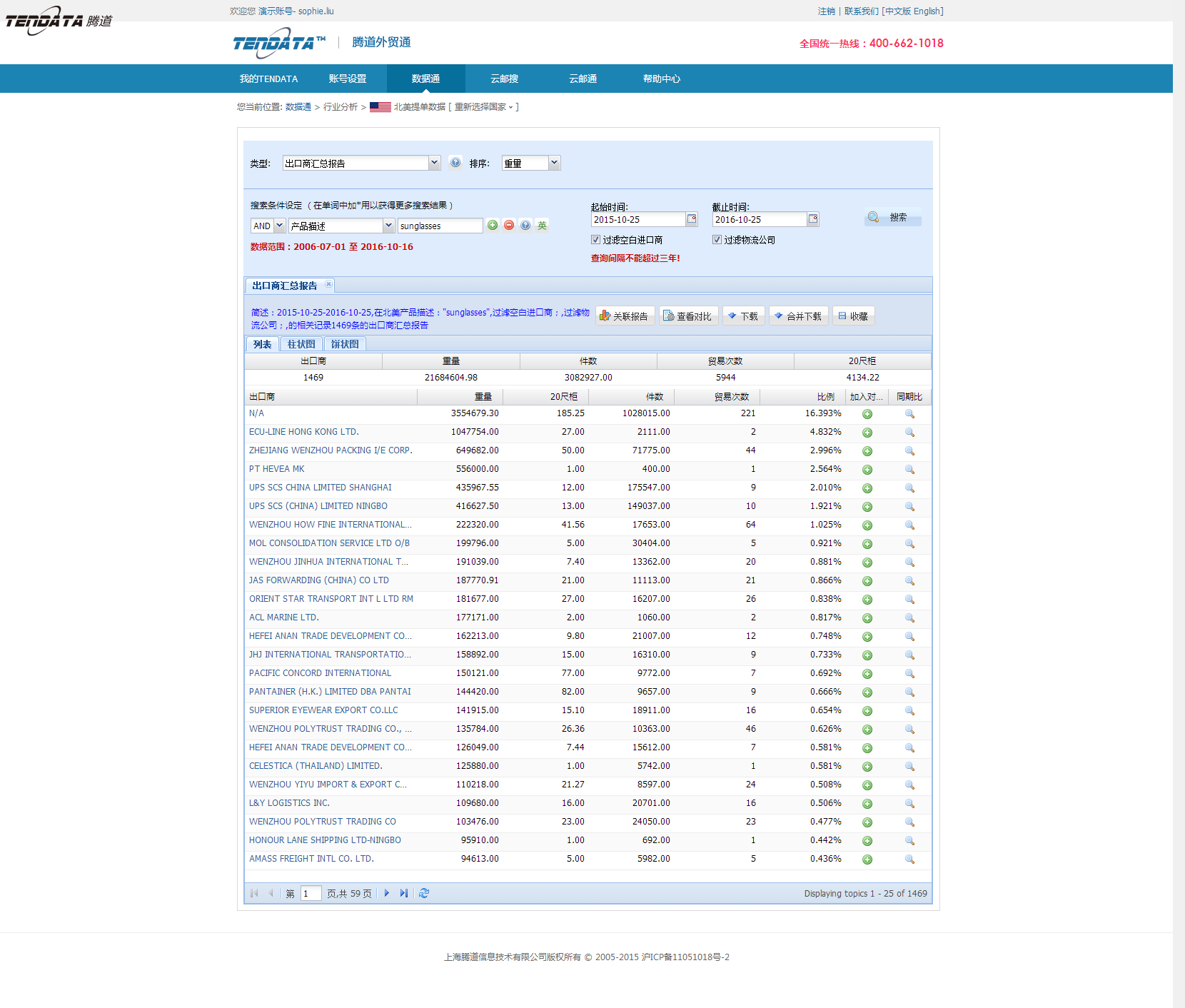 3、数据通:数据通涵盖全球95个国家的贸易数据,分析全局贸易环境,关注企业贸易动态。顺利获得威九国际V9API(应用程序接口),用户可自定义访问全球最全面的贸易数据、商业数据库以及威九国际V9合作伙伴的商业数据。
